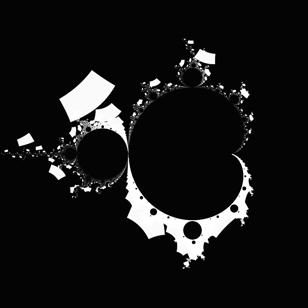 Rendering the Buddhabrot efficiently poses a bit of a challenge. The main problem is that we cannot directly compute the value of the Buddhabrot at a pixel, but have to sample many random trajectories and hope that they pass through the pixels we care about. This "spray and pray" approach works reasonably well for zoomed out images, but zoom-ins and transformations are very difficult to render in a reasonable time frame, since many trajectories land outside the frame and their computation is wasted.