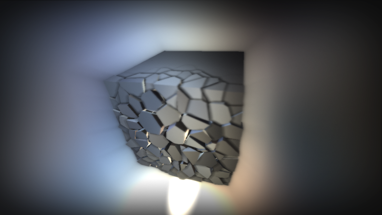 The major challenge in this project was to implement a robust fracturing algorithm. Voronoi partitioning produces visually pleasing results, but it is maddeningly difficult to implement, especially in the presence of round-off errors due to limited precision floating point. If not for the size restrictions, using an existing robust implementation such as CGAL or at least a variable precision library such as GMP would have been a less work-intensive choice, but 64 kilobytes are not enough space to harbor these libraries. Implementing the fracturing algorithm took more than 4 weeks, followed by an additional 2 weeks of making it stable for our input meshes.